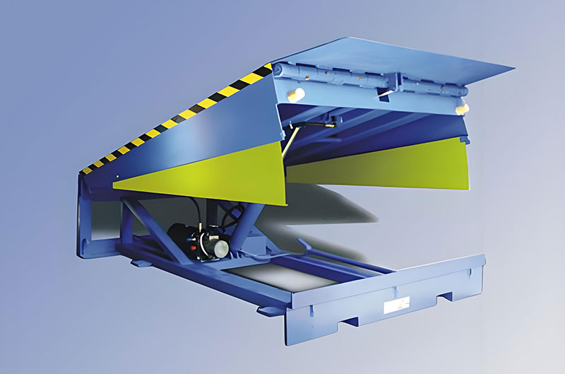 2、通過動力系統,大油缸升起整個斜板,至頂位時,小油缸開始工作,順暢伸出活頁搭板, 高度調節板全部采用濟南濟鋼優質高度花紋鋼板及型材緊密焊接,壽命長久。