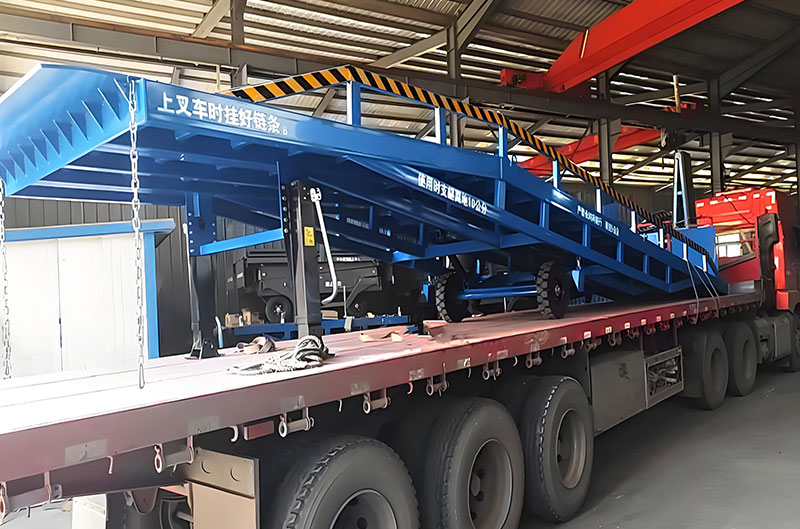 移動(dòng)式登車橋的主要作用是,在地平面與車廂之間搭起一座橋,有了它,叉車能直接從地面攜帶貨物駛?cè)肫囓噹麅?nèi)部,進(jìn)行批量裝卸作業(yè)。使用時(shí),前板架在貨車車廂上,起到承載重量的作用,減少了貨物重量對(duì)液壓登車橋的壓力,了液壓登車橋的使用壽命,從而達(dá)到長(zhǎng)期使用的目的。